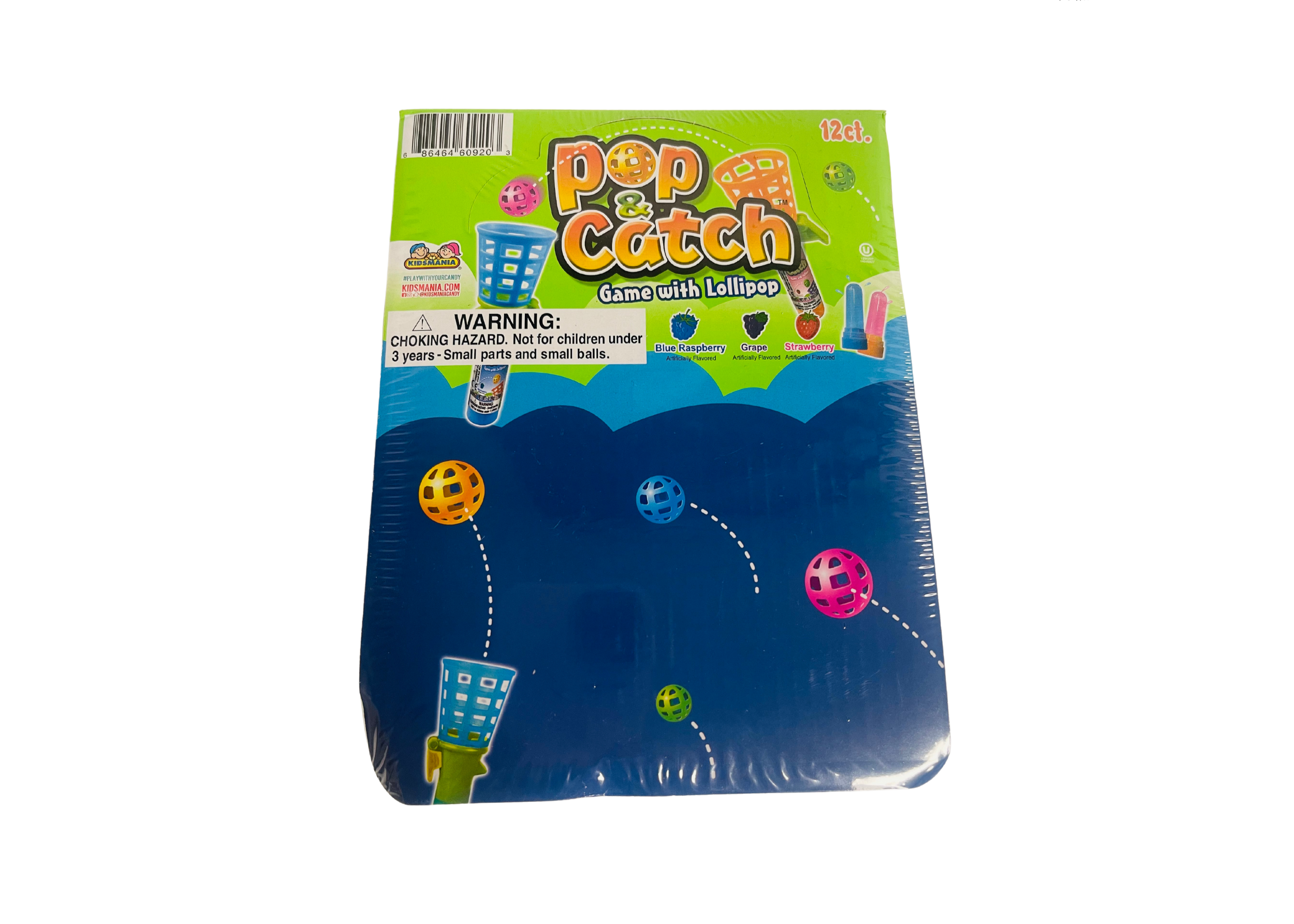 Each Pop & Catch Game with Lollipop package includes two plastic balls that launch about 4 feet up when you press the pop button.